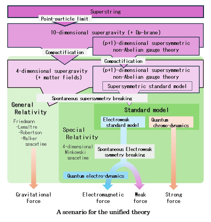 Physics beyond the standard model of elementary particles / Supersymmetry and higher-dimensional spacetime / Supergravity and string phenomenology / Unified theory of elementary particles