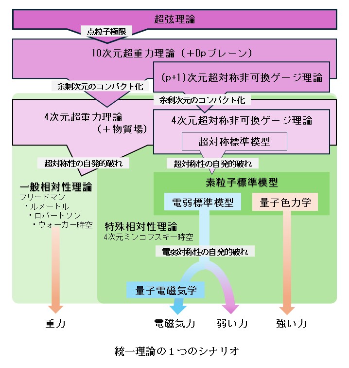 素粒子標準模型, 場の量子論, 大統一理論, 超対称性, 超重力理論, 超弦理論
