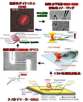 生体分子モーターの動作メカニズム / 筋収縮系の自励振動メカニズム / 筋収縮系・細胞骨格系の構造と機能の再構築 / 細胞分裂機構の力学操作・解析 / 超分子システムにおける1分子機能・分子間協調